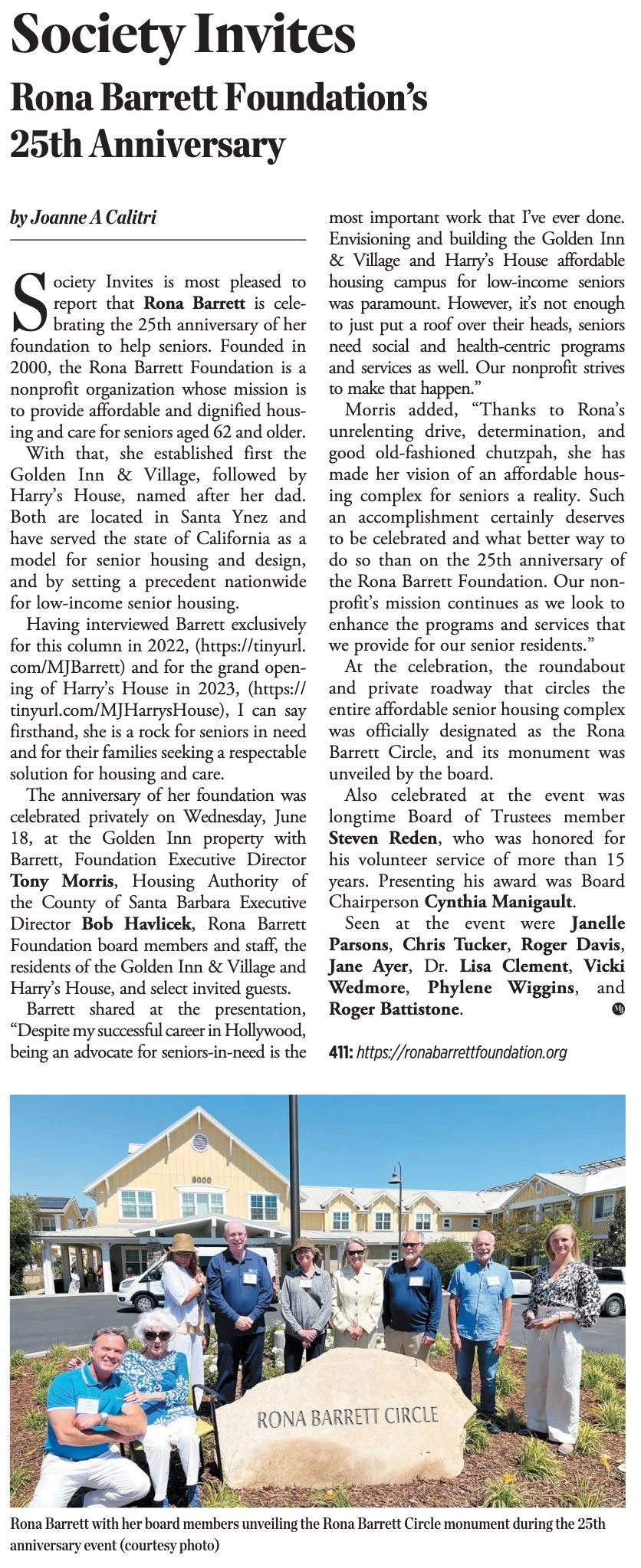 July 7, 2025 Rona Barrett In the News Rona Barrett Foundation's 25th Anniversary July 7, 2025 Rona Barrett In the News Read the Article Rona Barrett